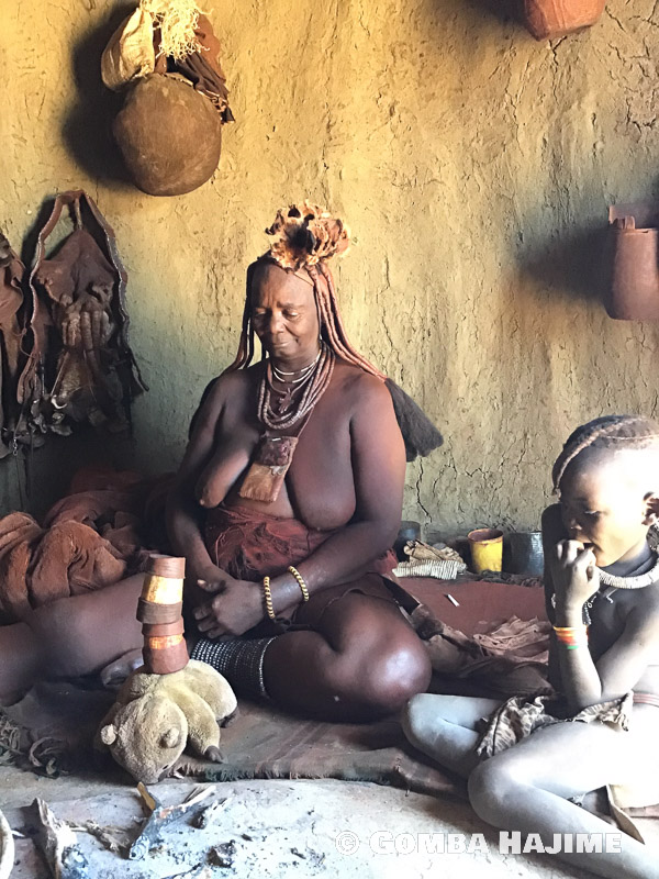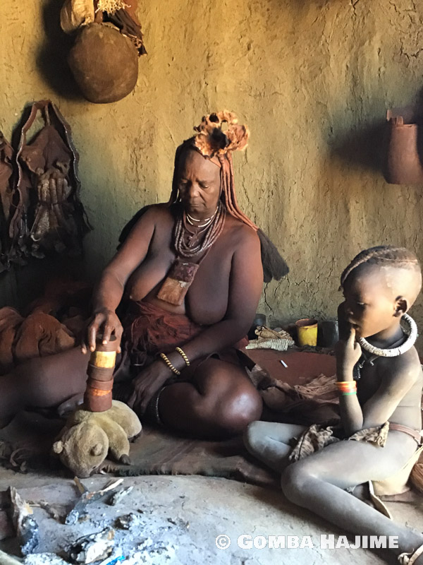 1000歳のおばあちゃん はじめ自称1000歳だったよぉ~ ナミビアの裸族のおばあちゃん。 一体何歳なのか聞いたら、だいだい1000歳だって! おいらのこと、くまなくチェックするんだよぉ~ ぬっは!そこはダメ・・・ チェックの結果、どうやら物置きだと認定されたおいら・・・ ドヤ顔・・・ あ、寝た! え!二個目!? ドヤ顔! また寝た!! ちなみにこの缶の中には不思議な香草ペーストが入ってて、ヒンバ族はそれを体に塗るから、一生お風呂に入らないんだって!とんでもなくいい香りだったよ~~ ちょっと塗ってもらっちゃった!